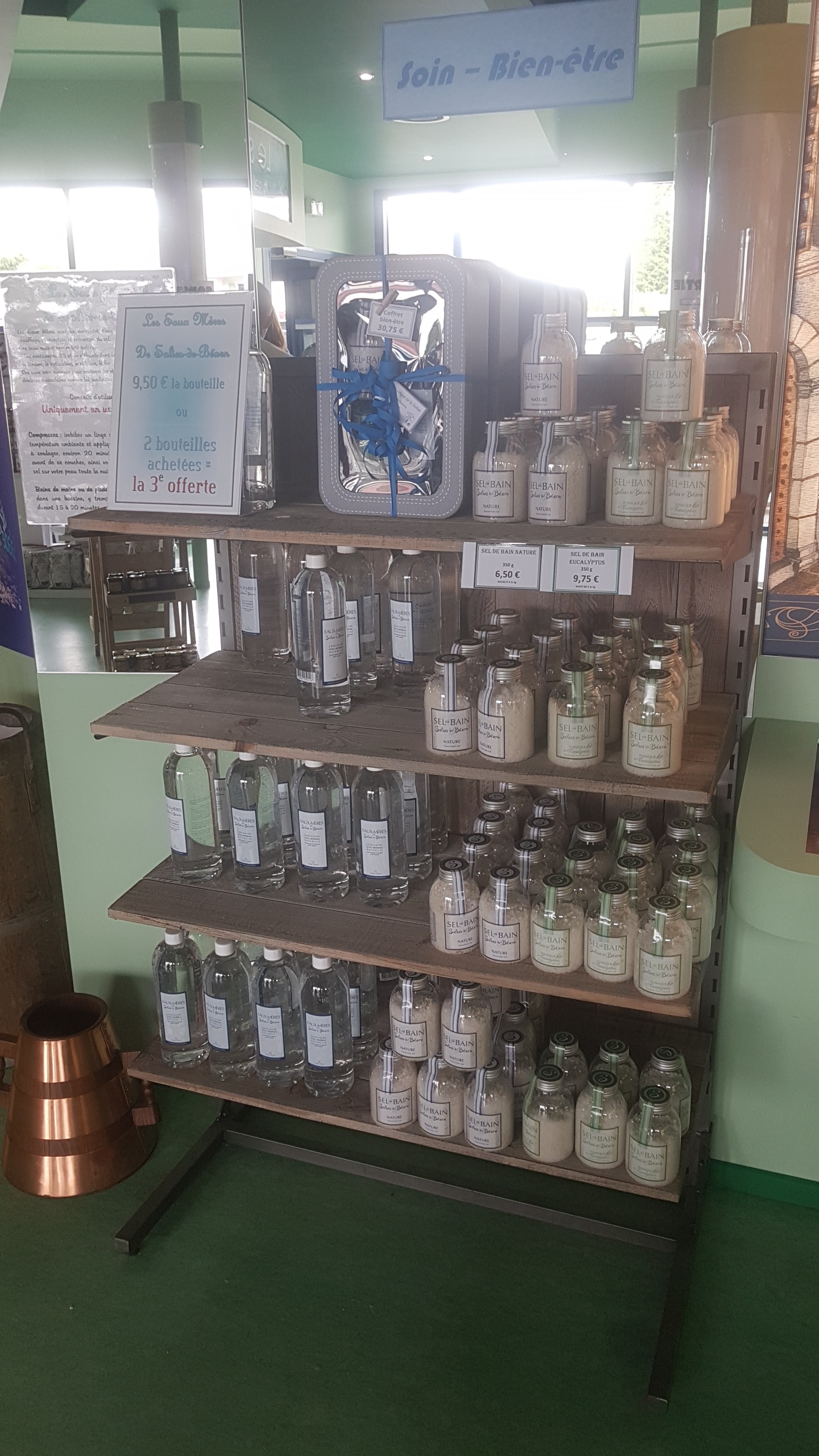 Très jolie bouteille et pleins de produit à base de sel , le plus c est quand on c est que se sel vient d une source salé, quel histoire