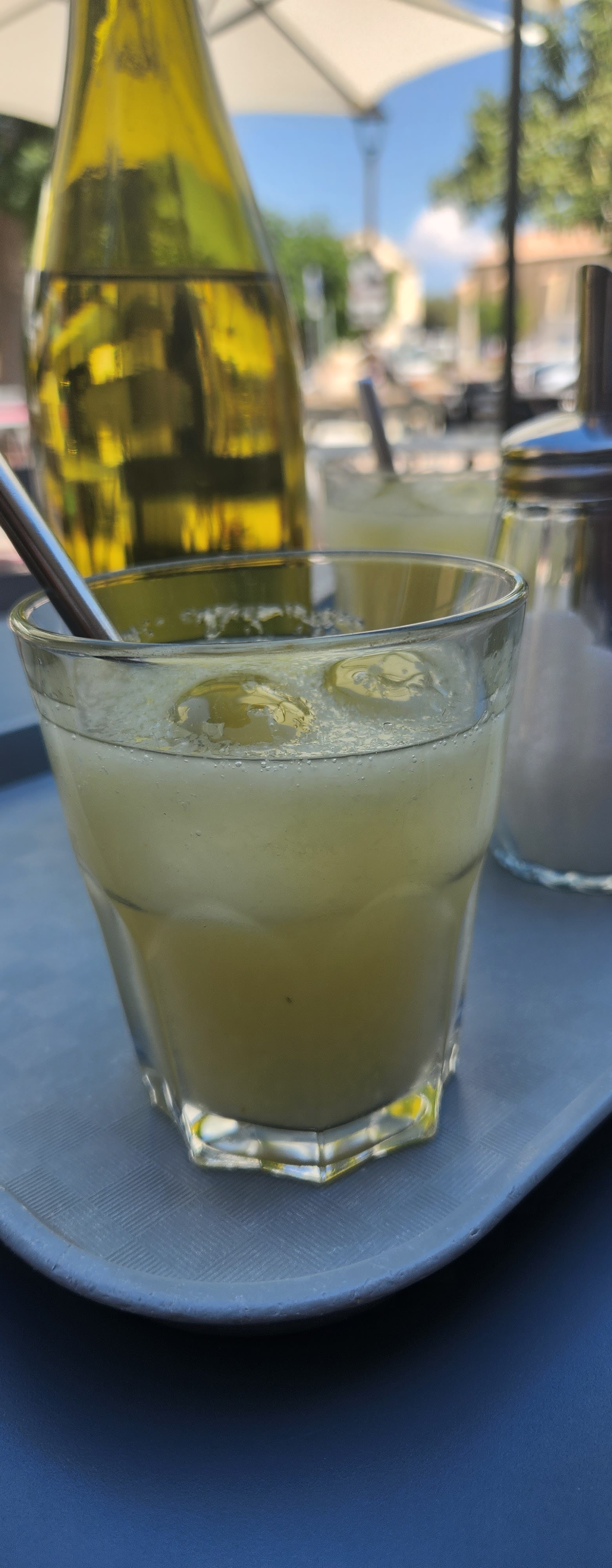 Du Pulco, tout simplement. Quand j'ai fait part de mon étonnement, les explications alambiquées de citrons des 4 saisons bla bla, celui là a étépasteurisé ( tu m'étonnes !).2€50 le verre de Pulco 😂